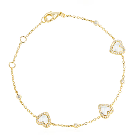 Sterling silver, 14K gold plated, Mother of Pearl, Cubic Zirconia